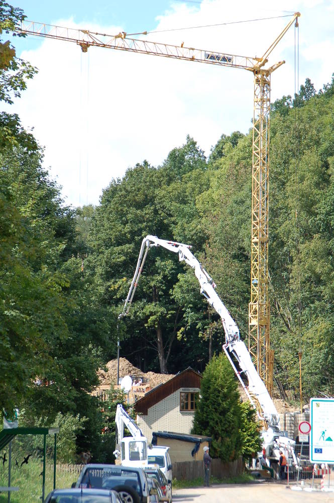 Inzwischen ist die Anzahl der Kräne auf 3 angestiegen plus einem Autokran.