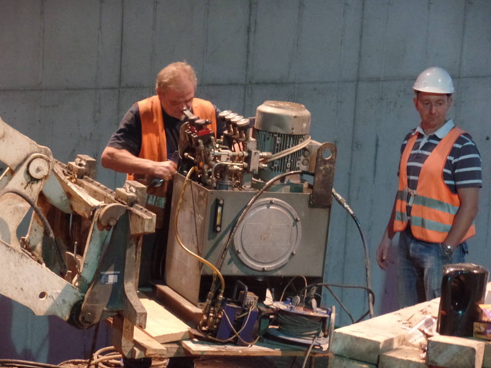 Der Abriß gestaltet sich schwieriger als gedacht. Der Beton ist sehr hart.